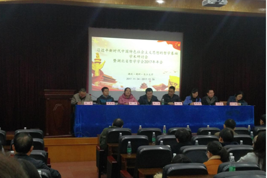 2017年11月25日至26日,“习近平新时代中国特色社会主义思想的哲学基础”学术研讨会暨湖北省哲学学会2017年年会在长江大学召开,必赢bwin网页版教师蔡潇参加了此次会议。本次研讨会就习近平新时代中国特色社会主义思想的哲学基础进行了广泛而深入的讨论,从研究范式到具体内容都进行了深入交流。与会学者就“新时代”的“新”在何处、社会存在与社会意识、主要矛盾变化、习近平新时代中国特色社会主义思想的世界历史意义、社会主义初级阶段、高校思想政治理论课课堂如何宣讲十九大精神、哲学的时代使命等主题进行了分组式讨论。必赢bwin网页版教师蔡潇参与了第四讨论组的讨论,并在大会上作主题发言。