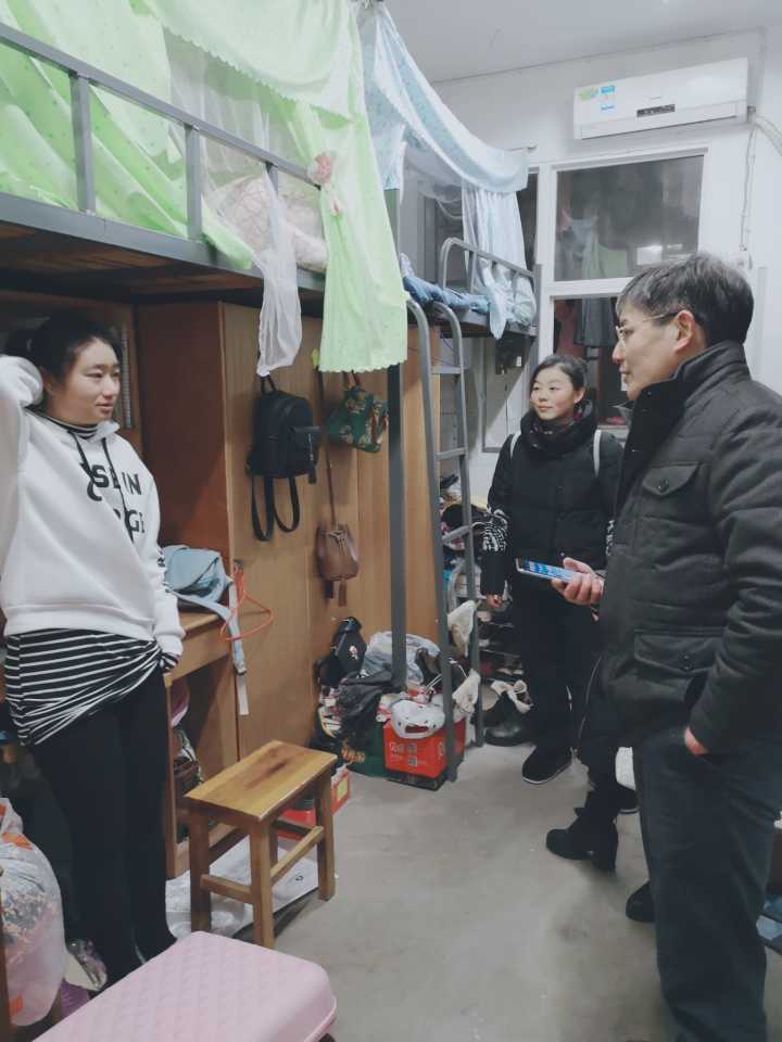 2月23日晚上6点半,为深入了解学生到校情况,强调开学安全问题,必赢bwin网页版党总支书记汪季石、院长周青鹏、党总支副书记席桢、副院长黄树光以及全体班主任老师深入学生宿舍,看望了刚刚收假的学生们。