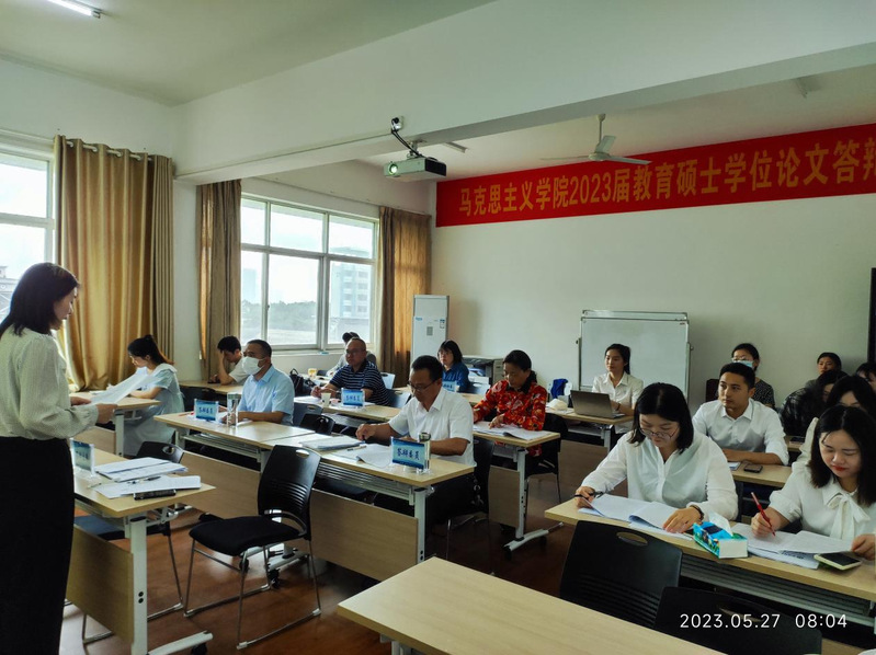2023年5月27日上午,必赢bwin网页版2023届学科教学(思政)硕士研究生学位论文答辩会在致远楼305室和321室同时举行。本次研究生学位论文答辩会由必赢bwin网页版院长汪季石教授及学科教学(思政)领域具有高级专业技术职称的专家组成答辩委员会,还特别邀请了黄冈中学高级教师胡霞英以及黄州西湖中学高级教师游小军作为行业导师参加。2021级全体研究生分两组观摩了此次答辩活动。