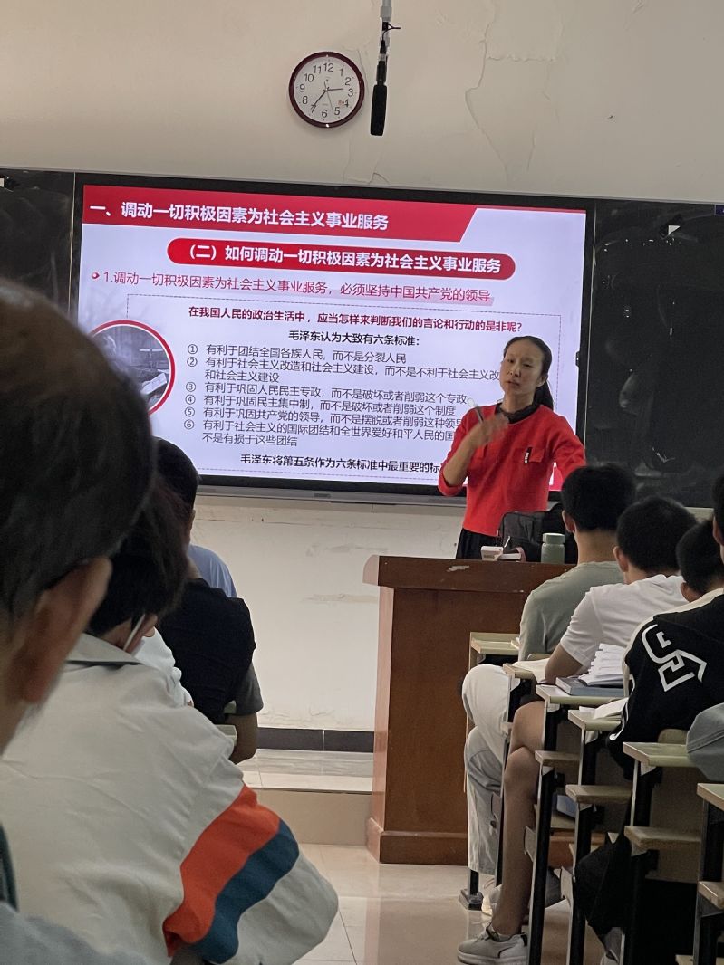 督导组给予两位授课老师较高评价的同时,也提出了一些宝贵建议强调要提升思政课魅力教师需要设计有效问题增加课堂互动,启发学生思考,提教学设计和PPT制作水平熟练运用网络课程平台此外督导组专家对教师课堂的肢体动作和语言表现也给予了详细指导。最后,教研室主任裴艳丽博士代表学院对督导组的指导表示感谢,指出青年教师认真倾听督导专家的建议利用一切学习机会不断提升自己讲准思政课的基础努力达到讲深、讲透、讲活的高标准。同时孔志祥主任发表讲话,对各位督导老师的中肯评价以及辛苦工作表示感谢,肯定了学院对本次活动的重视,同时也提出希望,希望青年教师要不断提升自己,争取早日成为黄师名师!