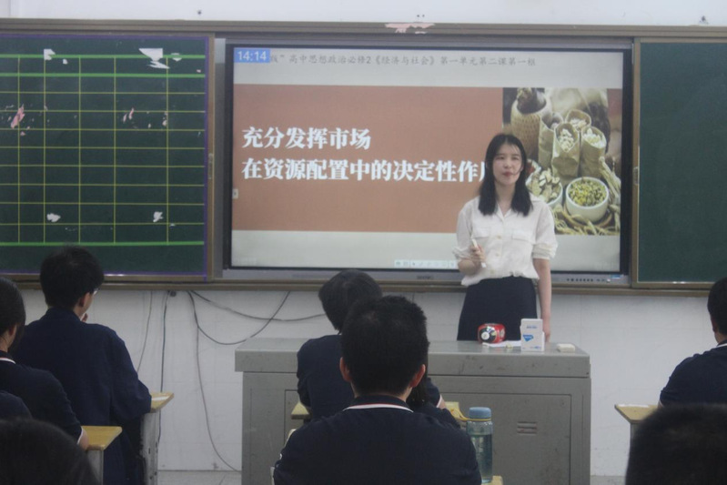 张舒惠同学讲课内容为《充分发挥市场在资源配置中的决定性作用》,她通过设置贴近学生生活的情境,生动地讲解了市场机制在资源配置中的重要作用,语言优美,讲解精辟。