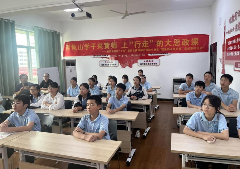 9月26日,省委讲师团“百马”宣讲队必赢bwin网页版小分队为结对实践点麻城市龟山镇开展“理论热点面对面”2025年系列宣讲第二场活动。本次活动以“迎龟山学子来黄师,上‘行走’的大思政课”为主题,通过课堂观摩学习、实地参观体验、座谈培训交流等形式为麻城市龟山镇中学生代表带来一场富有创意的大思政课。