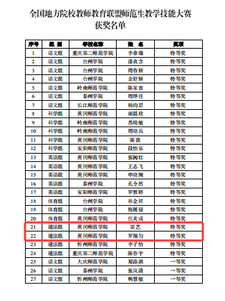 院高度重视师范生教学技能的培养,坚持“理论与实践并重”的育人理念,通过课程实训、模拟授课、技能竞赛等多种方式,全方位提升学生的专业素养与教学能力。此次斩获双特等奖,不仅是对两位同学个人能力的肯定,更是学院人才培养成果的有力彰显。未来,院将继续深化师范教育改革,持续提升人才培养质量,力争培养出更多政治过硬、业务精湛的思政教育后备力量,为新时代思政教育事业贡献黄师力量。